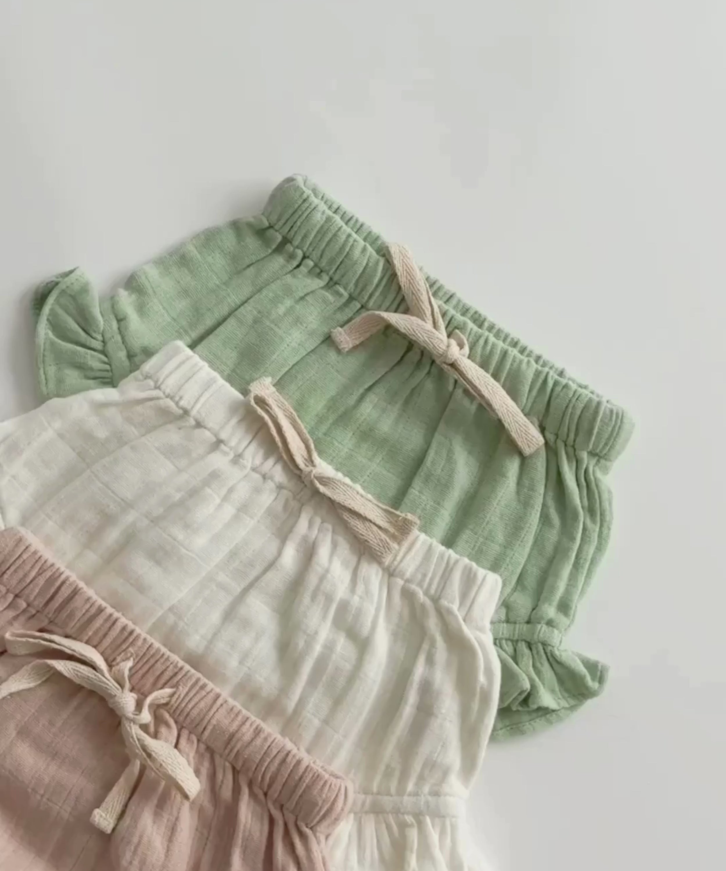 Our beautifully crafted Vivie bloomers with ruffled frills and cotton twill bow ties can be paired with any blouse in our collection - and are a wardrobe staple for your little one.